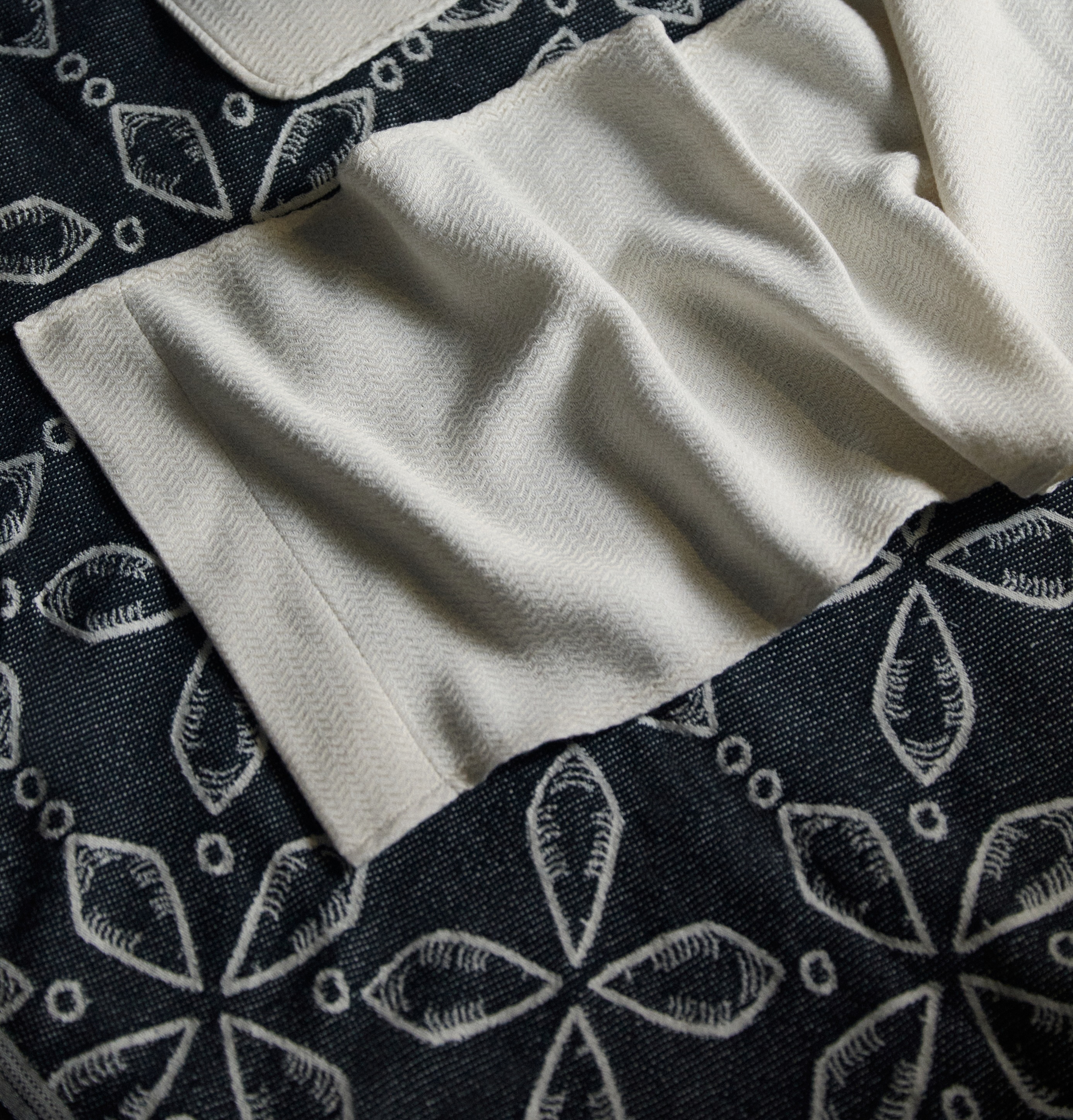 지중해 연안의 전통 직조 방식을 이어가는 소규모 아틀리에의 손길을 거칩니다. 100% GOTS 인증 유기농 면사만을 사용하며, 고유의 셔틀 직기로 원단을 완성하기까지 길게는 3개월의 시간이 소요됩니다.